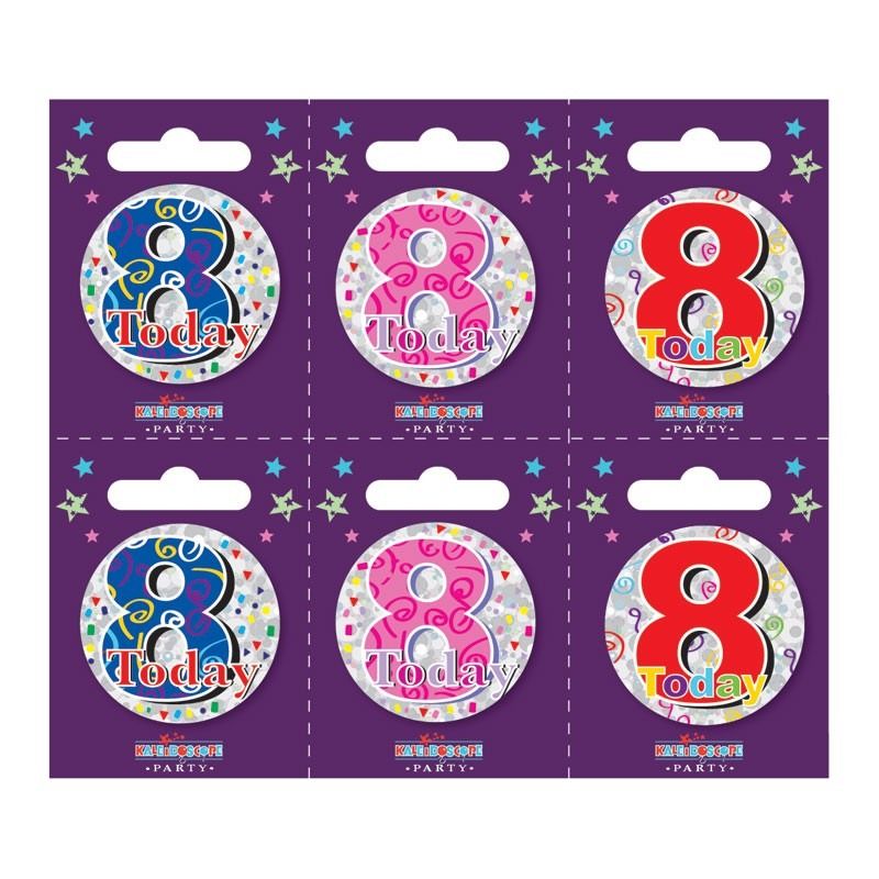 Age 8 Small Badges (6 assorted per perforated card) (5.5cm)