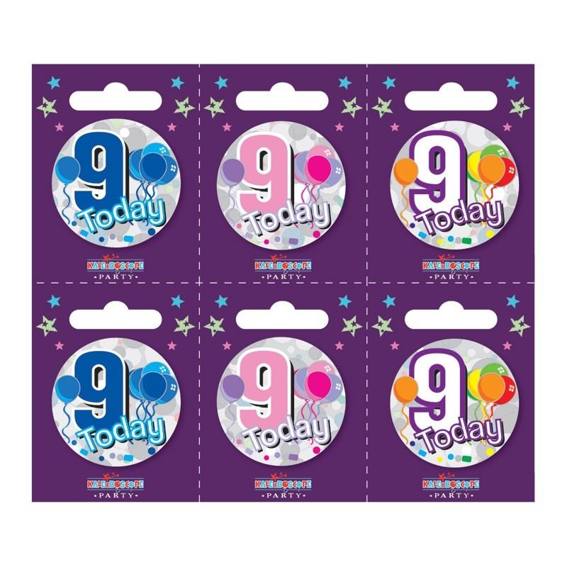 Age 9 Small Badges (6 assorted per perforated card) (5.5cm)