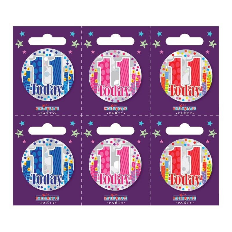 Age 11 Small Badges (6 assorted per perforated card) (5.5cm)