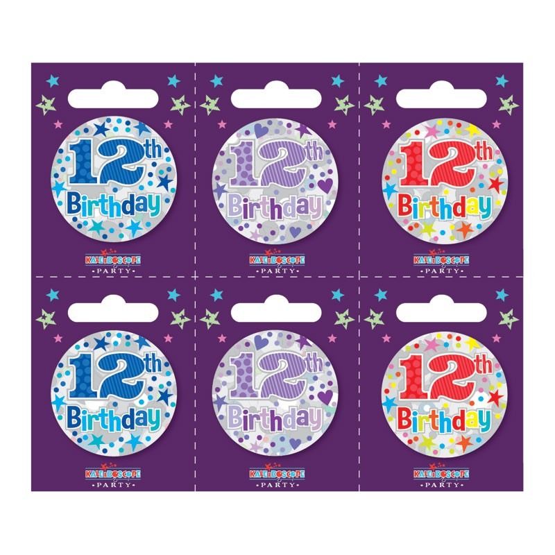 Age 12 Small Badges (6 assorted per perforated card) (5.5cm)