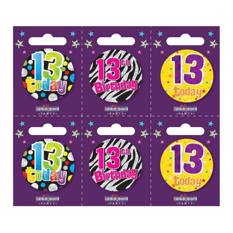 Age 13 Small Badges (6 assorted per perforated card) (5.5cm)