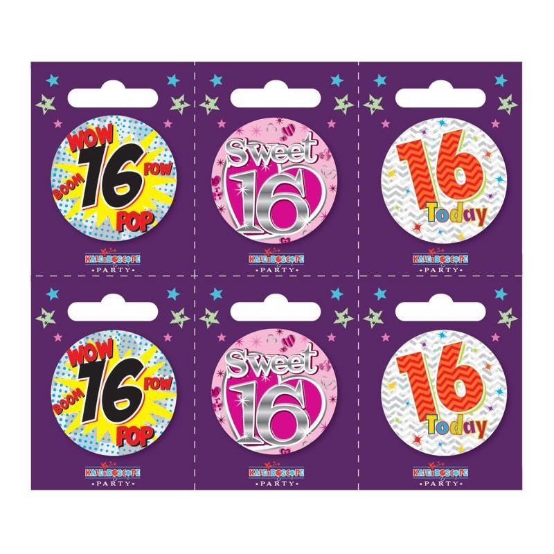 Age 16 Small Badges (6 assorted per perforated card) (5.5cm)