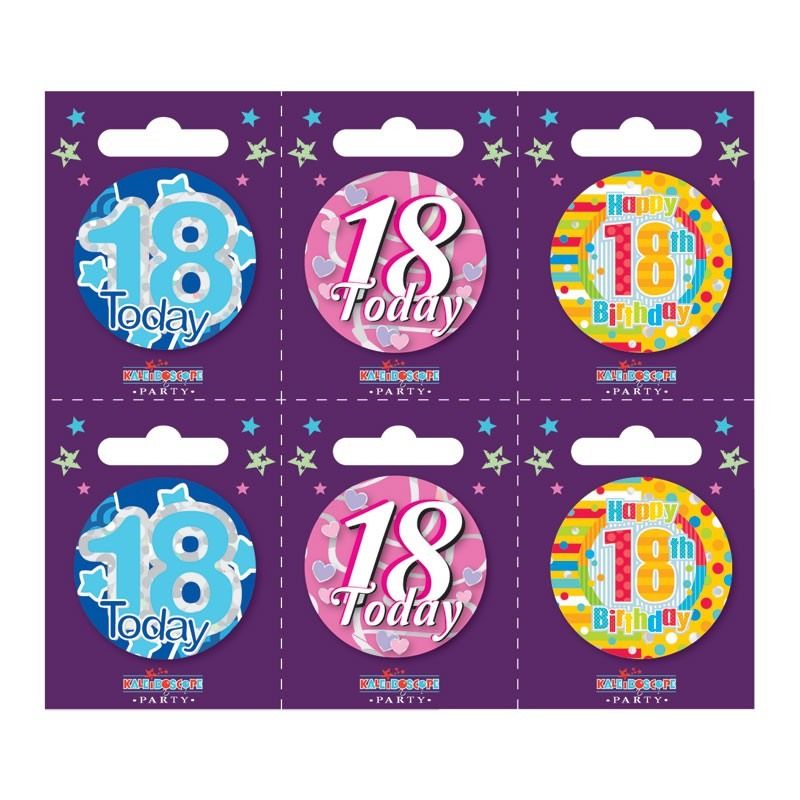 Age 18 Small Badges (6 assorted per perforated card) (5.5cm)