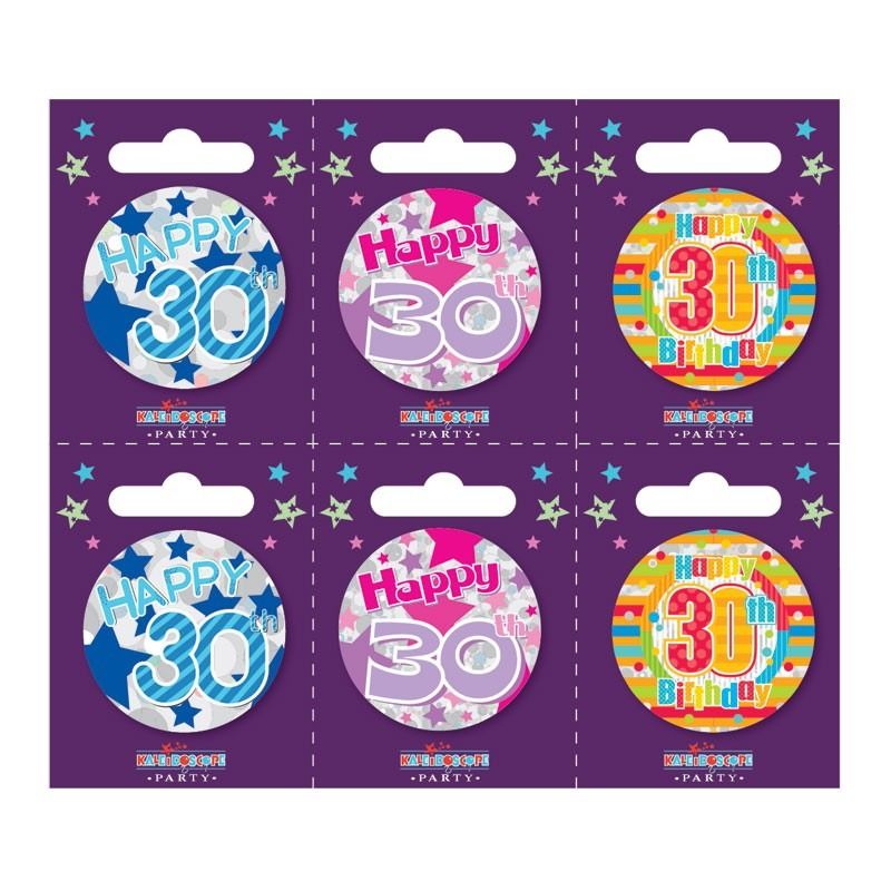 Age 30 Small Badges (6 assorted per perforated card) (5.5cm)
