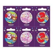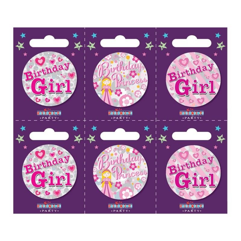 Birthday Girl Small Badges (6 assorted per perforated card) (5.5cm)