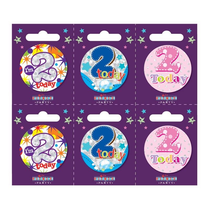 Age 2 Small Badges (6 assorted per perforated card) (5.5cm)