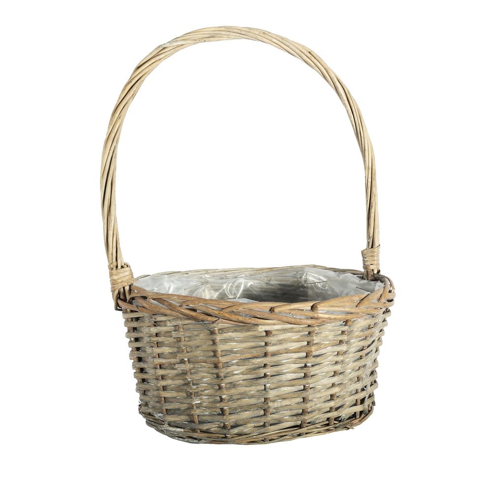 Oval Split Willow Basket With Handle and Liner - Grey Wash - Dia 32cm