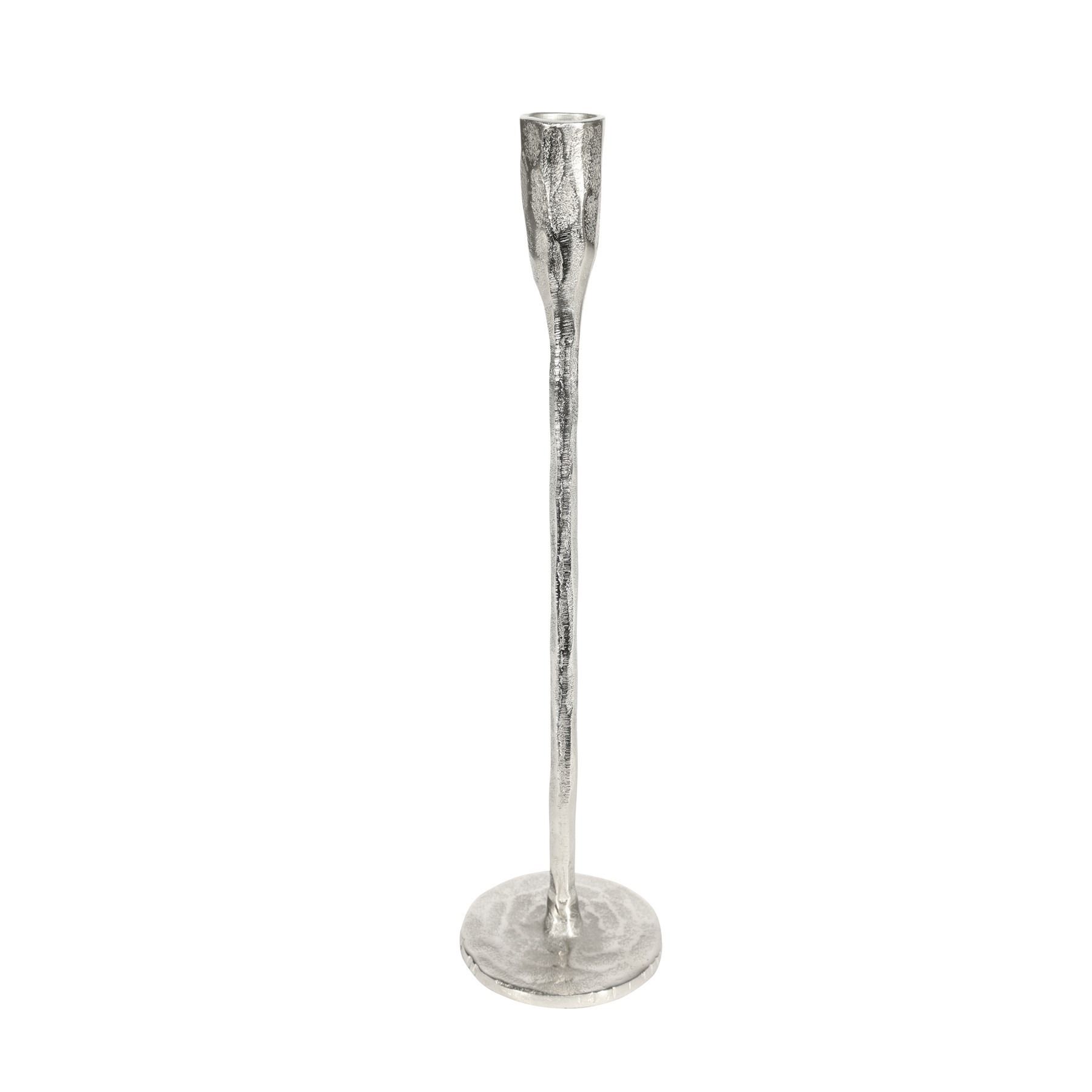 Alu. Organic Slim Candle Holder Raw Silver H26cm