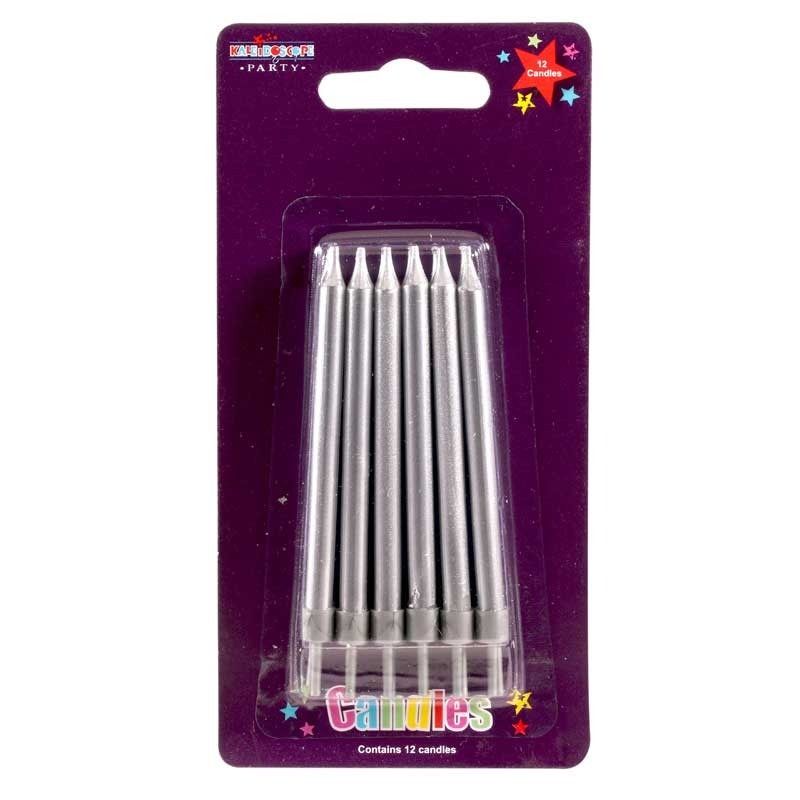 Straight Stripes Candles Silver (x12) - Pack of 6