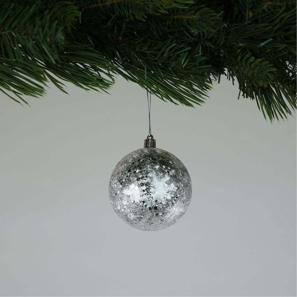 Crackle Silver Baubles (8cm) (6 Pieces)