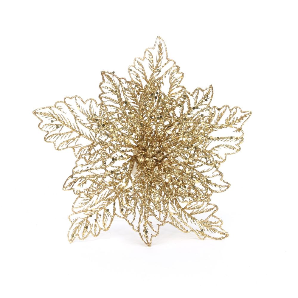 Poinsettia w/Clip 23cm Glitter Gold