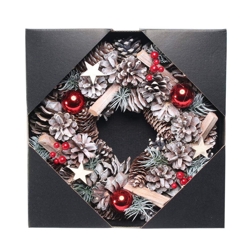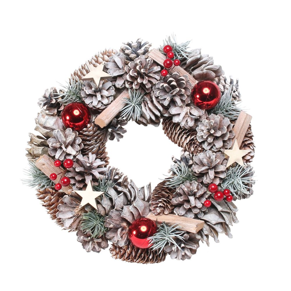 Woodland Snow Wreath w/Red Baubles (30cm)