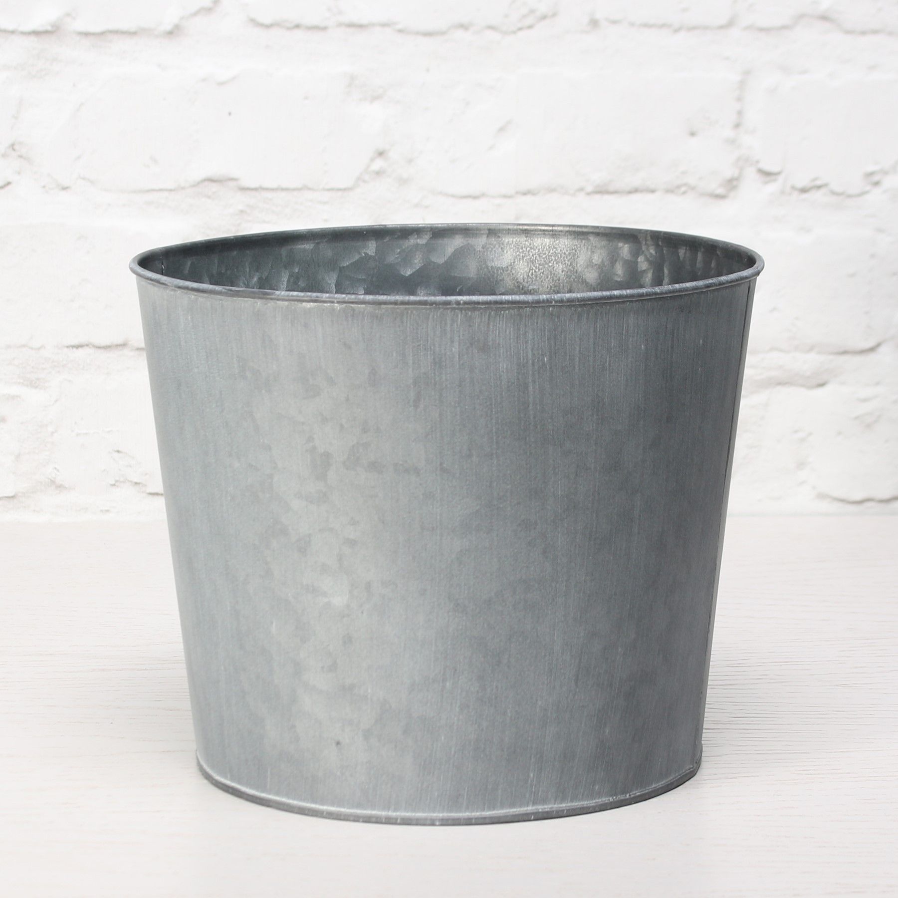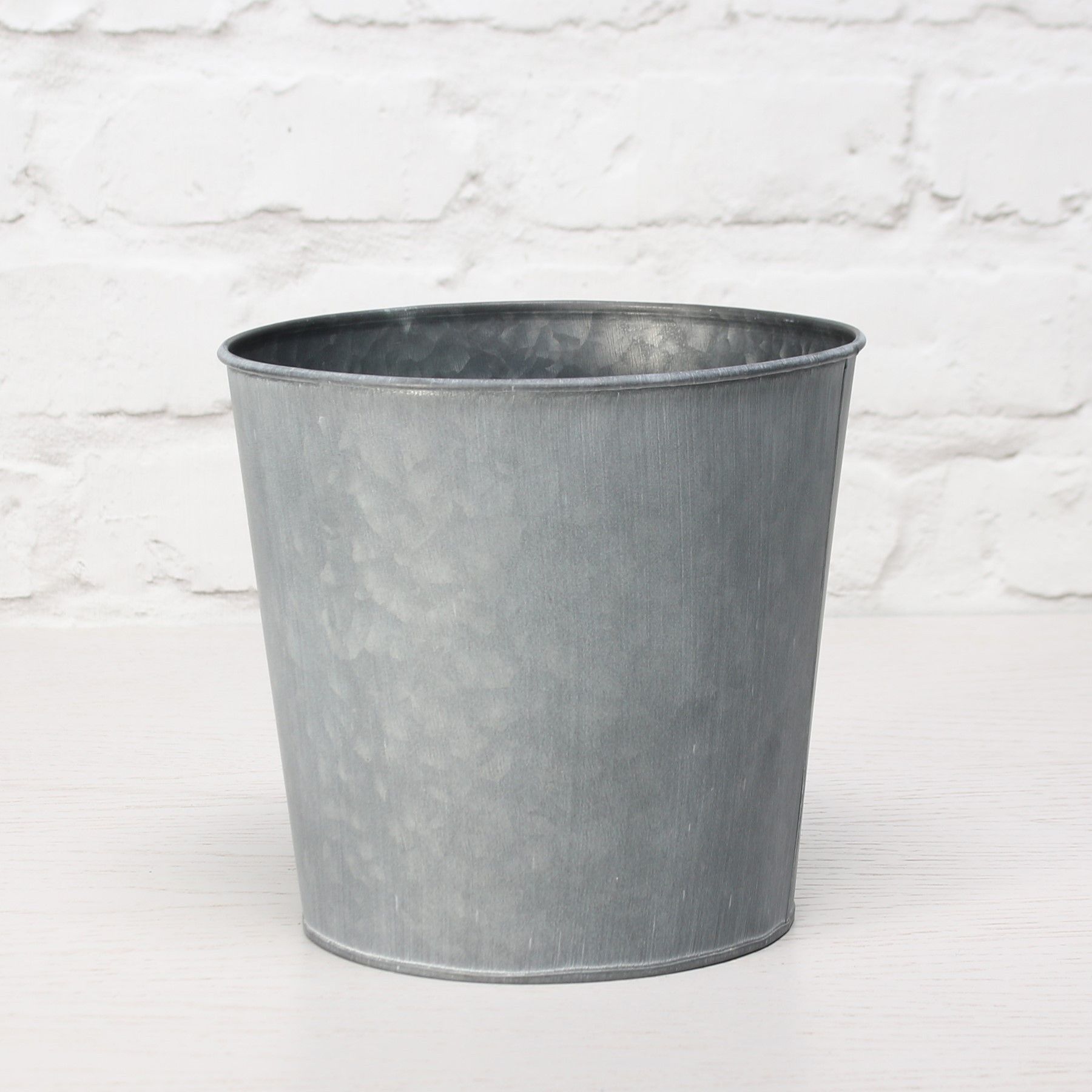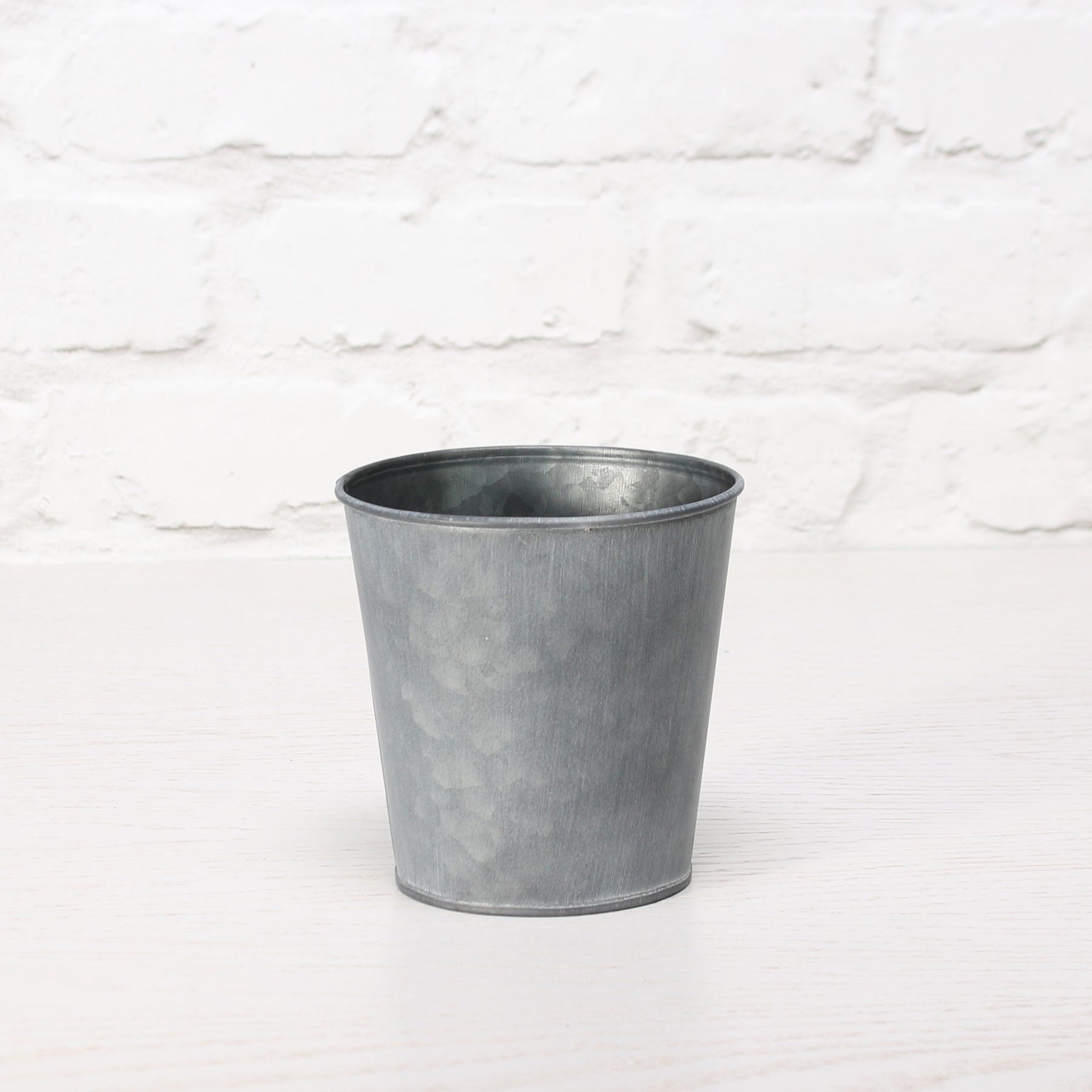 12cm Round Antique Grey Zinc Pot with Whitewash