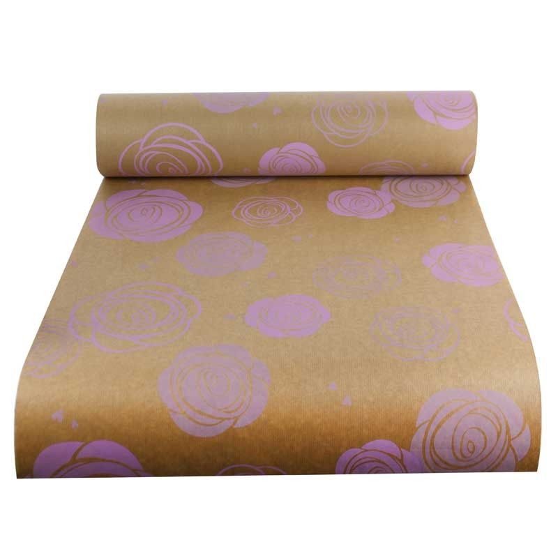 Natural Kraft Paper with Lilac Rose Heads (50x125m)